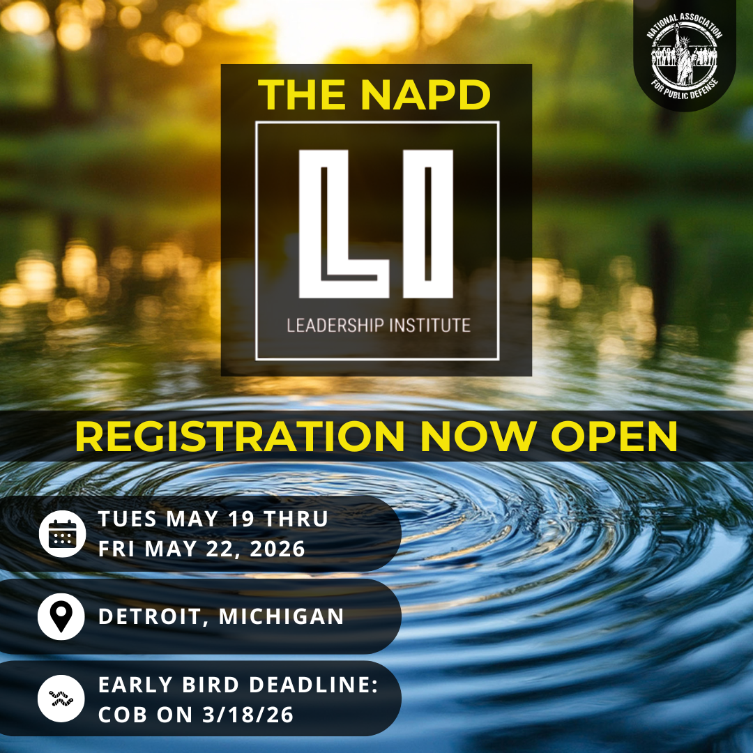 This training is ideal for both new and experienced leaders from all sectors of public defense—federal, state, county, contract, and assigned counsel systems. Leaders of investigators, social workers, administrators, and other public defense professionals are encouraged to attend. NAPD’s leadership trainings provide the practical tools you need to bring transformative change to your office, justice system, and community.