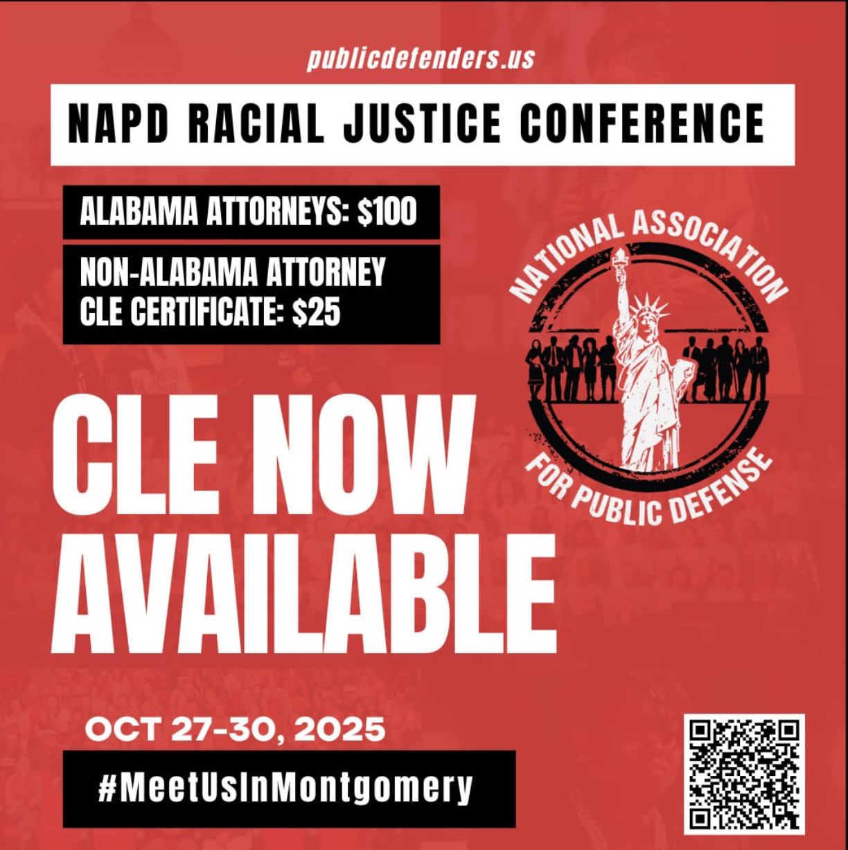Join the National Association for Public Defense (NAPD) for the sixth annual Racial Justice Conference (“RJC”), as we return to Montgomery, Alabama, one of the historic homes of the Civil Rights Movement. NAPD is proud to host this immersive and transformative conference, designed to enhance your understanding of racial justice and your ability to fight for it in your work as a public defense professional.